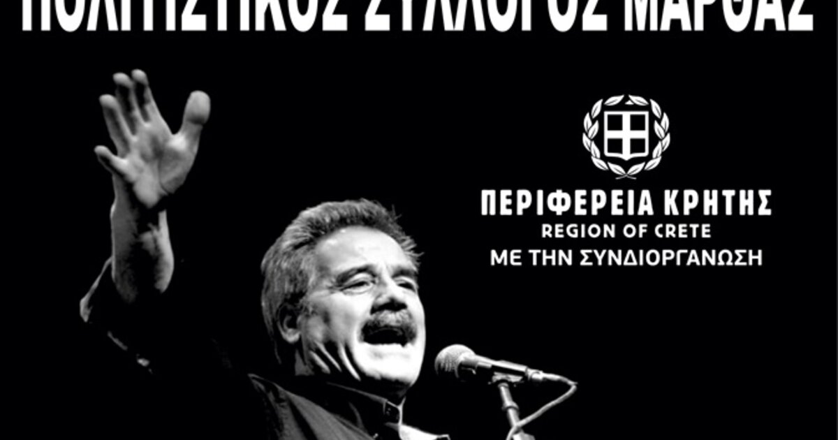 Ο Πολιτιστικός Σύλλογος Μάρθας , με την υποστήριξη της Περιφέρειας Κρήτης, διοργανώνει βραδιά κρητικής μουσικής με το συγκρότημα του Βασίλη Σταυρακάκη.
