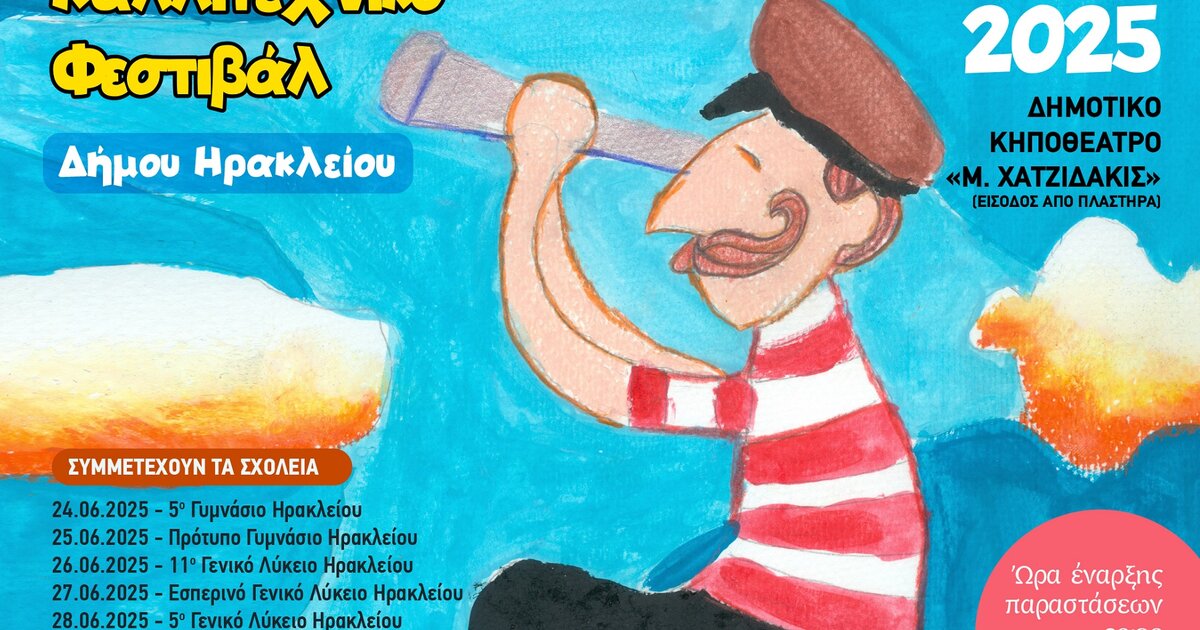 Ξεκινά σήμερα το 6ο Μαθητικό Καλλιτεχνικό Φεστιβάλ Δήμου Ηρακλείου το οποίο διοργανώνουν ο Δήμος Ηρακλείου δια της Αντιδημαρχίας Παιδείας σε συνεργασία με τη Σχολική Επιτροπή Δευτεροβάθμιας Εκπαίδευσης Δήμου Ηρακλείου και τη Διεύθυνση Δευτεροβάθμιας Εκπαίδευσης Ηρακλείου.