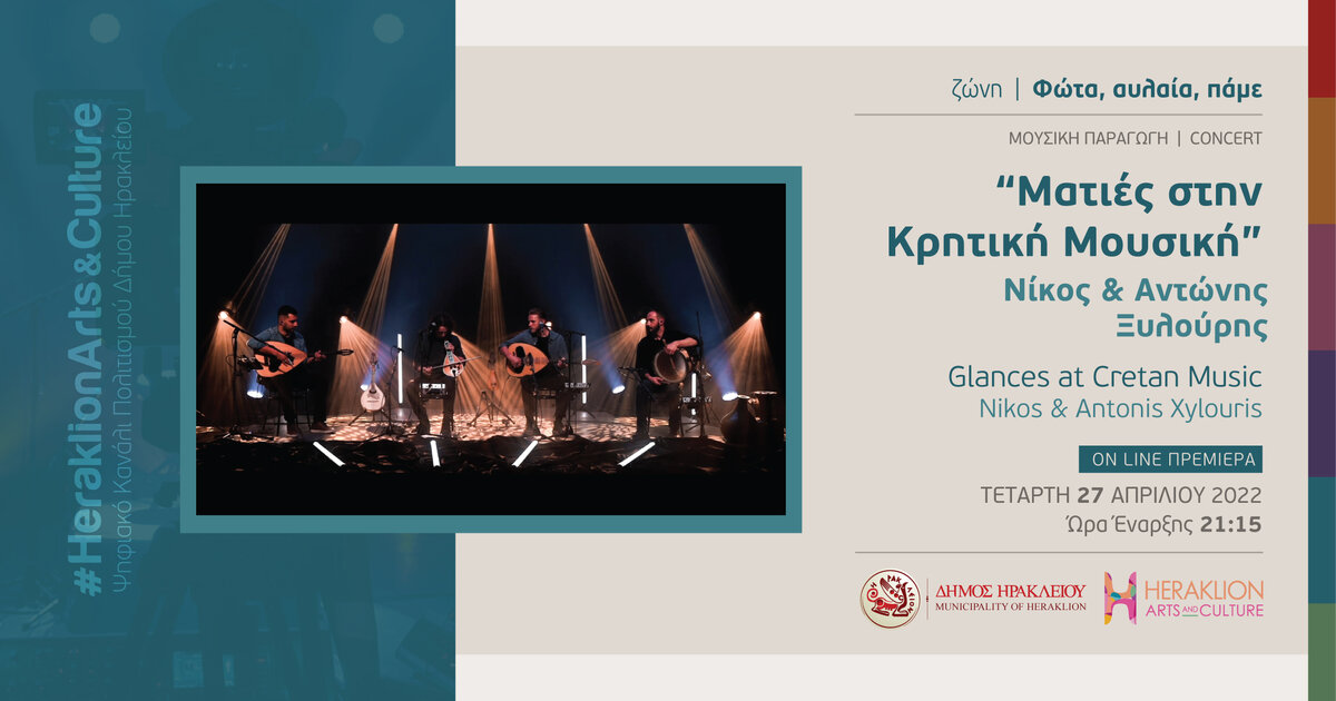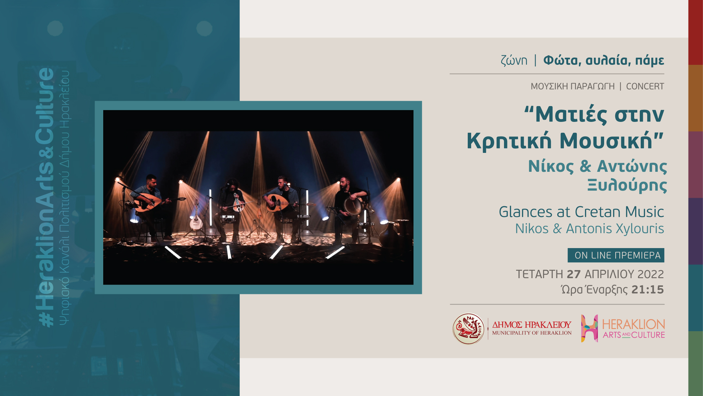 Ο Νίκος και ο Αντώνης Ξυλούρης μας παρουσιάζουν μια μοναδική συναυλία στο πλαίσιο του κύκλου συναυλιών με τίτλο, «Ματιές στην Κρητική Μουσική» που πραγματοποιήθηκαν για το κανάλι πολιτισμού του Δήμου Ηρακλείου.