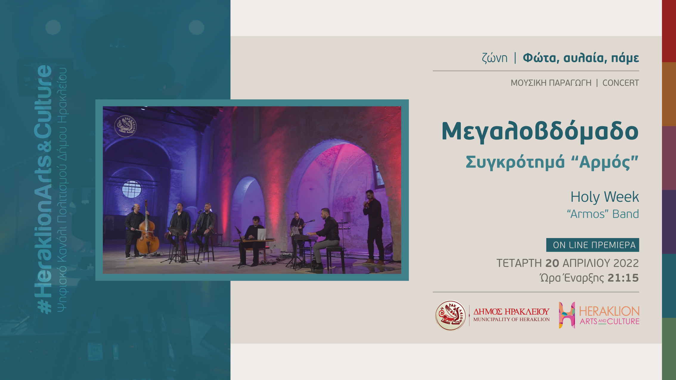Μια θεματική διαδικτυακή συναυλία από τους Αρμός με τραγούδια μεγάλων ποιητών και συνθετών με αφορμή την Μεγάλη Εβδομάδα. Ο συμβολισμός της Μεγάλης Εβδομάδας ανέκαθεν υπήρξε ιδιαίτερος, αφού κατά τη διάρκεια των ημερών της, κυριαρχούν εθιμικά και νοερά, όλα σχεδόν τα συναισθήματα. Η θλίψη και η απώλεια, η αγωνία, ο θυμός, αλλά και η λύτρωση, η ανακούφιση, η συγκίνηση και η χαρά, συναισθήματα και πάθη αμιγώς ανθρώπινα που, όμως, εκείνες τις ημέρες ανάγονται στη θεϊκή τους διάσταση.