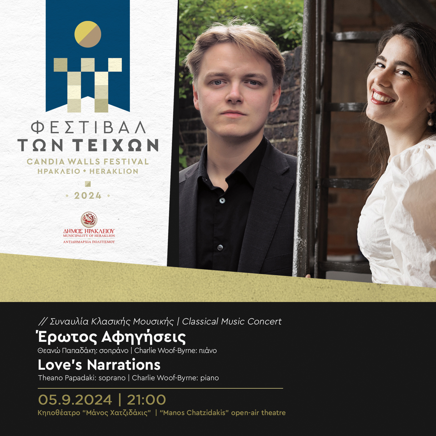 Επίσης, σημειώνεται ότι την Τρίτη 3 Σεπτεμβρίου στις 18:00 ξεκινά η διάθεση των δελτίων εισόδου για την συναυλία κλασικής μουσικής «Έρωτος Αφηγήσεις» η οποία θα πραγματοποιηθεί την Πέμπτη 5 Σεπτεμβρίου στο Κηποθέατρο «Μάνος Χατζηδάκις» στις 21:00 με τη Σοπράνο Θεανώ Παπαδάκη και στο πιάνο τον Charlie Woof-Byrne.
