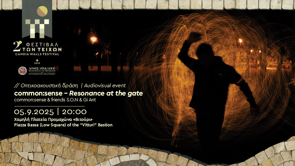 Στο πλαίσιο της οπτικοακουστικής δράσης Resonance at the gate της ομάδας common:sense οι Ιωάννης Παπαδογιαννάκης και Ανδρέας Γιαννακάκης θα ταξιδέψουν όσους βρεθούν στην χαμηλή πλατεία του προμαχώνα Βιτούρι στις 20:00 σε ένα ηχητικό ταξίδι με ambient υφές, ρυθμικές επαναλήψεις και ηλεκτρονικές παρεμβάσεις.