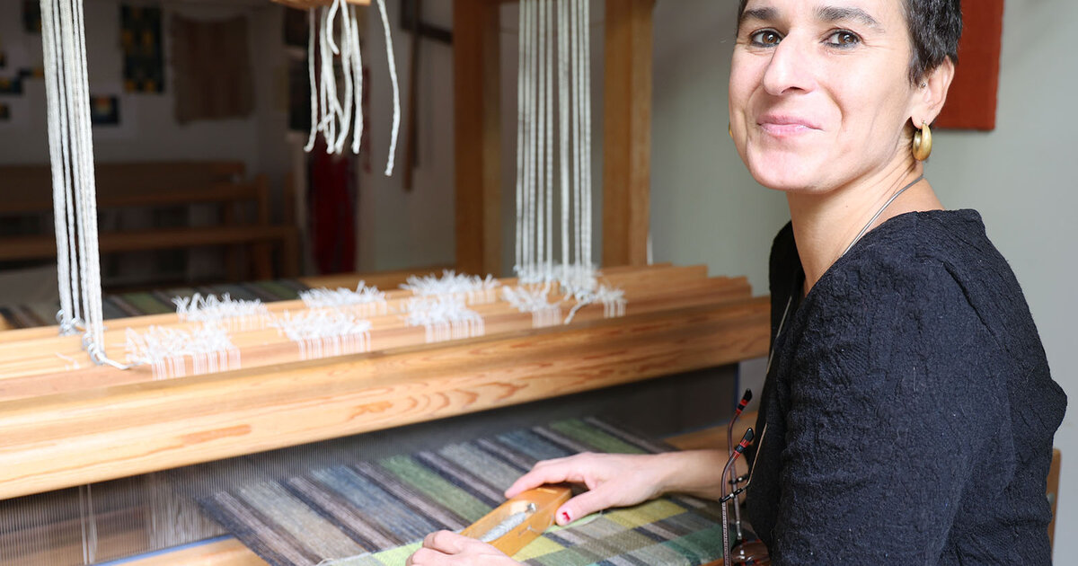 Στα υφαντά της συχνά η κυρία Κάλβο χρησιμοποιεί νήματα που έχει βάψει η ίδια με φυσικές βαφές. Το υλικό που διαλέγει ως επί το πλείστον είναι το λινό, αλλά κάνει διάφορους συνδυασμούς με κασμίρ, άγριο μετάξι, μαλλί και βαμβάκι.