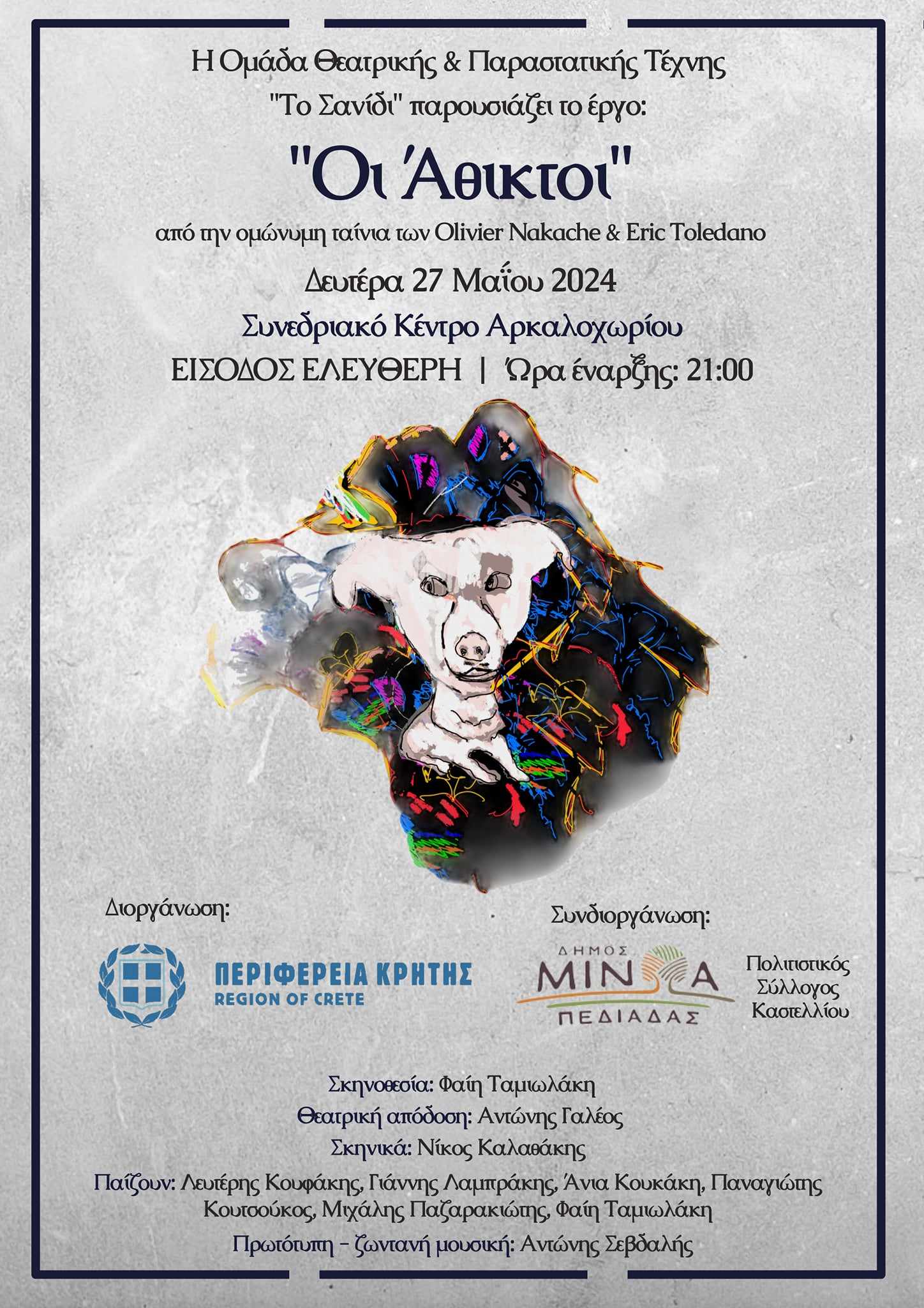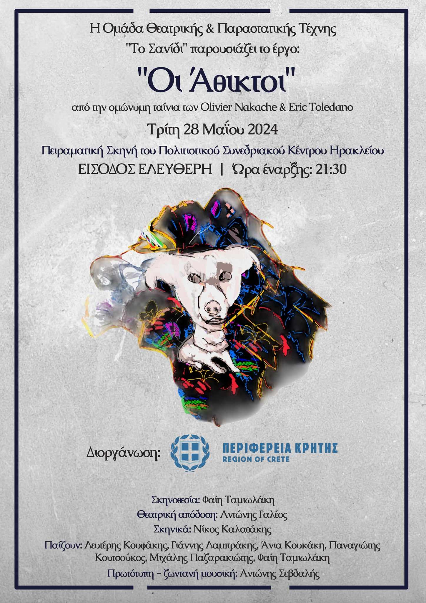 Το θεατρικό έργο «Οι Άθικτοι» παρουσιάζει η Ομάδα Θεατρικής και Παραστατικής Τέχνης «Το Σανίδι» με την στήριξη της Περιφέρειας Κρήτης-Είσοδος ελεύθερη