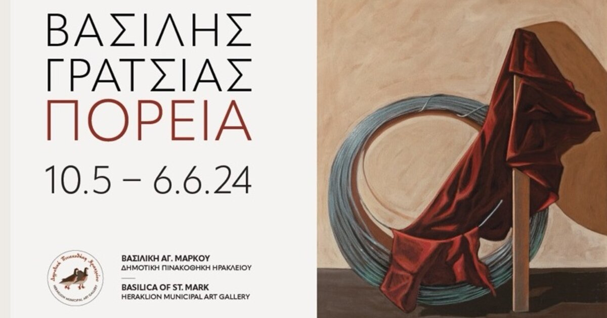 Η αναδρομική έκθεση του ζωγράφου Βασίλη Γρατσία «Πορεία» πρόκειται να παρουσιαστεί στη Βασιλική Αγίου Μάρκου από τις 10/5/2024 έως τις 6/6/2024 σε συνδιοργάνωση με την Περιφέρεια Κρήτης και με την υποστήριξη του Δήμου Ηρακλείου και της Δημοτικής Πινακοθήκης Ηρακλείου.