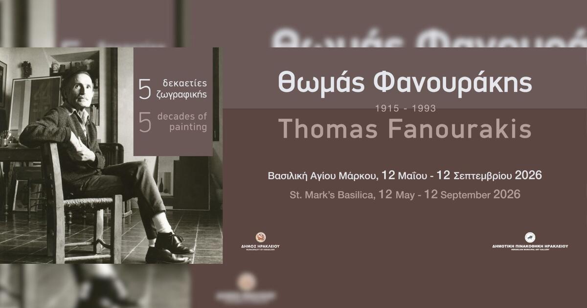 Ο Δήμος Ηρακλείου, η Αντιδημαρχία Πολιτισμού και η Δημοτική Πινακοθήκη Ηρακλείου διοργανώνουν την πρώτη μεγάλη αναδρομική έκθεση αφιερωμένη στο έργο του σημαντικού Ηρακλειώτη ζωγράφου Θωμά Φανουράκη (1915-1993) στη Βασιλική του Αγίου Μάρκου από τις 12/5/2026 έως και τις 12/9/2026.