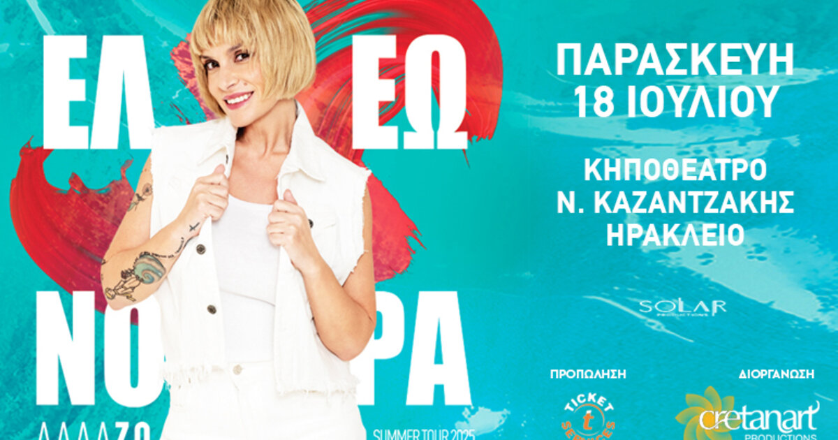 Στο κηποθέατρο "Νίκος Καζαντζάκης" στο Ηράκλειο θα εμφανιστεί στις 18 Ιουλίου η Ελεωνόρα Ζουγανέλη στο πλαίσιο της περιοδείας της με γενικό τίτλο "Αλλά-ΖΩ 2025".