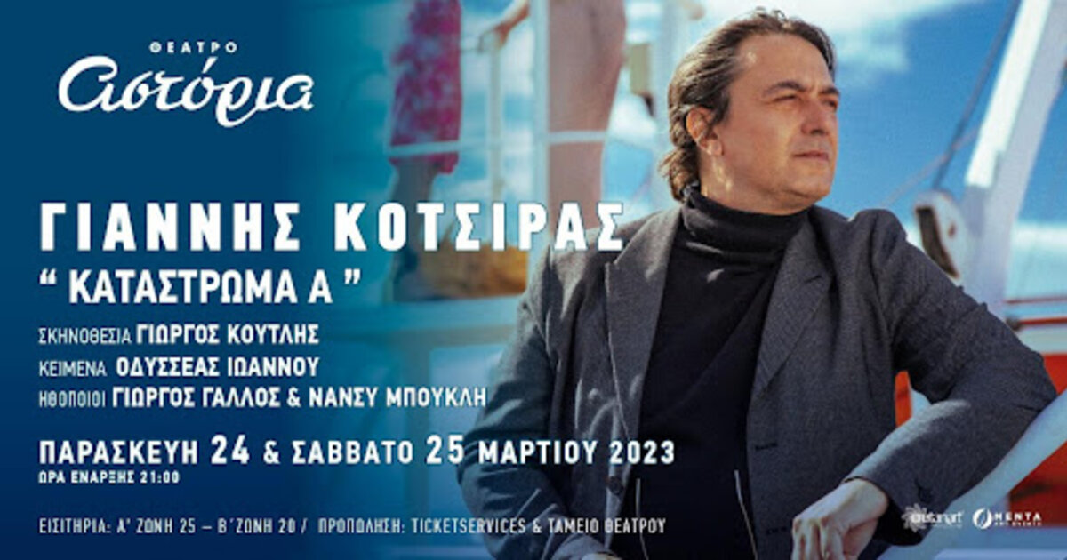 Ηλεκτρονική Προπώληση: https://www.ticketservices.gr/event/giannis-kotsiras-katastroma-a-irakleio/