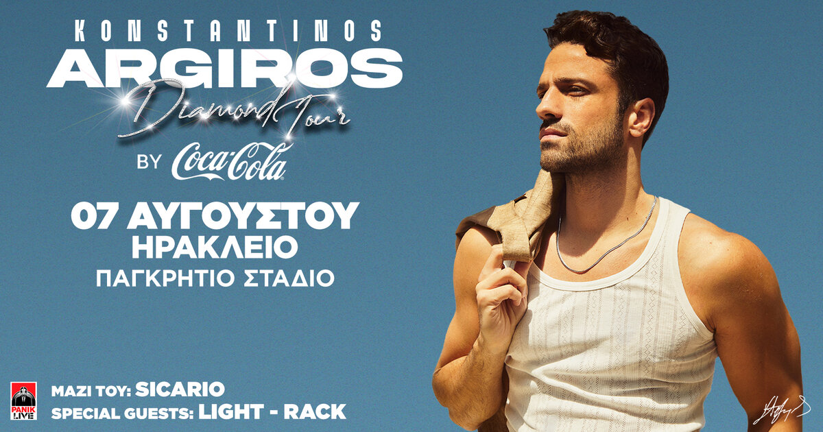 Ο Κωνσταντίνος Αργυρός μας οδηγεί και αυτό το καλοκαίρι στο πιο επικό μουσικό ταξίδι, μέσα από την περιοδεία του «Diamond Tour By Coca-Cola»σε Ελλάδα και Κύπρο! Το «Diamond Tour by Coca-Cola»,μία παραγωγή υψηλών προδιαγραφών της Panik Live, με την υποστήριξη της Coca-Cola, έρχεται ως επιστέγασμα άλλης μίας συναρπαστικής χρονιάς για τον Κωνσταντίνο Αργυρό, ο οποίος, μεταξύ άλλων, κατέκτησε τις διαμαντένιες πωλήσεις για το album «22», που κυκλοφορεί από την Panik Platinum.