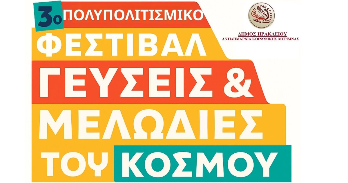 Το 3ο Πολυπολιτισμικό Φεστιβάλ «Γεύσεις και Μελωδίες του Κόσμου» διοργανώνει για άλλη μια χρονιά ο Δήμος Ηρακλείου στο Πάρκο Γεωργιάδη το Σάββατο 5 Ιουλίου από τις 18:30 έως τις 22:00 με ελεύθερη είσοδο για το κοινό.