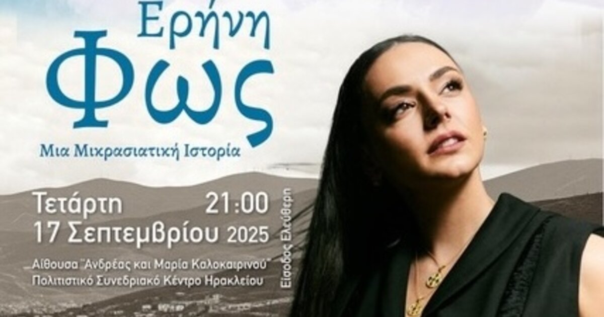 Η Ηρακλειώτισσα ερμηνεύτρια Ερήνη, με διεθνή διαδρομή και έδρα τη Νέα Υόρκη, επιστρέφει στον τόπο της με μια παράσταση αφιερωμένη στη μικρασιατική της κληρονομιά. Το « Φως » είναι ένα έργο που παντρεύει μικρασιατικά τραγούδια σε σύγχρονες ενορχηστρώσεις με αρχειακό και οπτικοακουστικό υλικό, φέρνοντας στο προσκήνιο την ιστορία των Μικρασιατών προσφύγων και Μικρασιατισσών προσφυγισσών, καθώς και τον καθοριστικό ρόλο των κρητικών κοινοτήτων ως φορέων μνήμης και δημιουργίας.