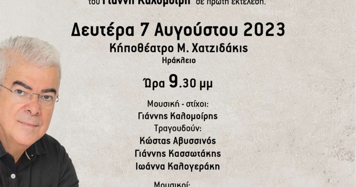 Την Δευτέρα 7 Αυγούστου 2023 στις 9.30μμ στο κηποθέατρο "Μάνος Χατζιδάκις" θα γίνει η παρουσίαση του νέου κύλου παραδοσιακών τραγουδιών με τίτλο "ΓΙΑ ΕΝΑ ΑΣΠΑΛΑΘΟ".