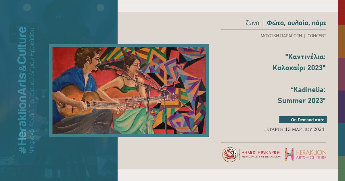 Η συναυλία με τα Καντινέλια, η οποία παρουσιάστηκε το καλοκαίρι του 2023 στo πλαίσιo του Φεστιβάλ «Κρήτη μια Ιστορία, 5+1 Πολιτισμοί», είναι πλέον διαθέσιμη στο κανάλι πολιτισμού του Δήμου Ηρακλείου Heraklion Arts and Culture!