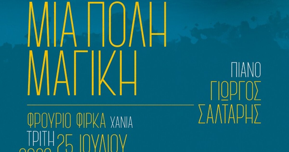 Η Ερμηνεύτρια Ερωφίλη και ο Πιανίστας Γιώργος Σαλτάρης συναντιούνται στην πόλη των Χανίων, σε… μια πόλη μαγική… για να μας προσφέρουν μια αξέχαστη βραδιά, για να μοιραστούν μαζί μας στιγμές και συναισθήματα, στίχους και μελωδίες.