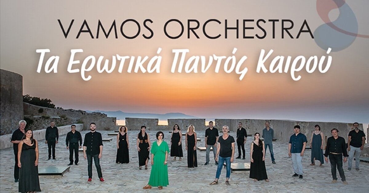 Στο πλαίσιο του «Φεστιβάλ Κρήτης» της Περιφέρειας Κρήτης που οργανώνει για τρίτη χρονιά, με την αιγίδα υπουργείου Πολιτισμού, παρουσιάζει το Μουσικό Σύνολο Vamos Orchestra και τη συναυλία με τίτλο «Τα Ερωτικά Παντός Καιρού». Οι συναυλίες θα γίνουν την Παρασκευή 21 Ιουλίου στο παλαιό δημοτικό σχολείο Αρχανών και τη Δευτέρα 24 Ιουλίου στο ενετικό φρούριο Καζάρμα στη Σητεία με ώρα έναρξης στις 9 το βράδυ.