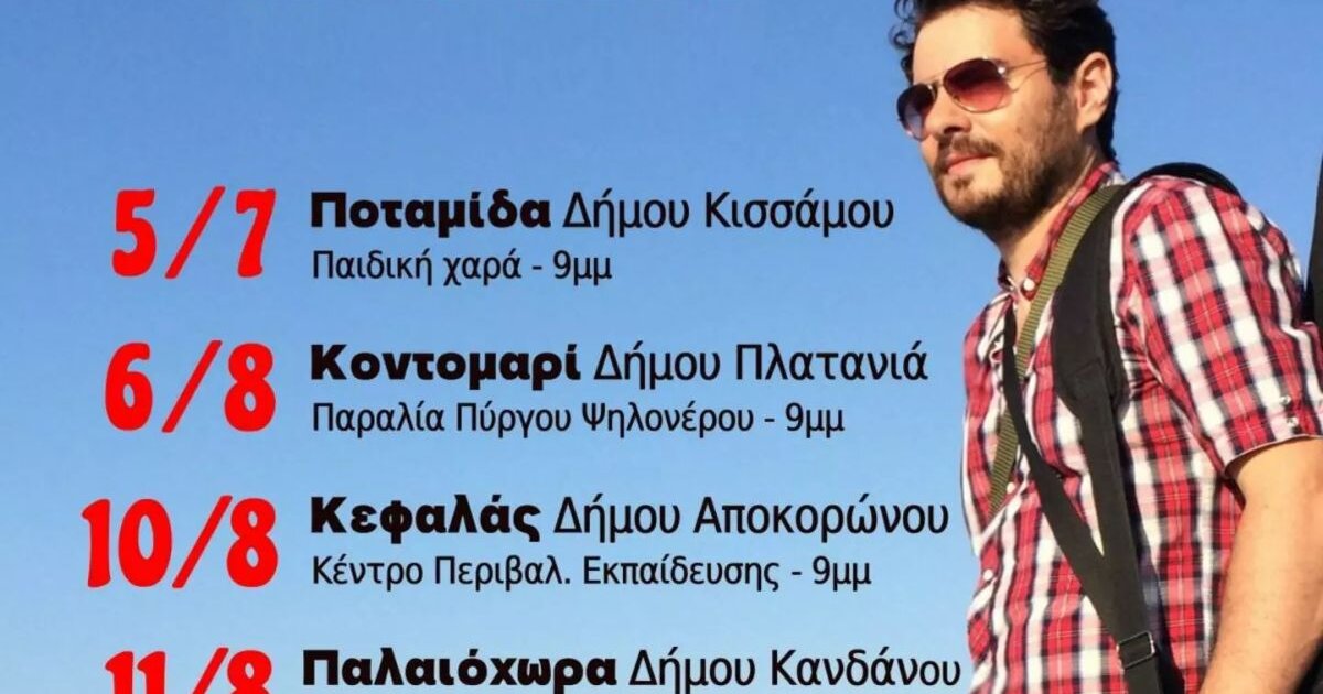 Κυριακή 6 Αυγούστου 2023, Κοντομαρί Δήμου Πλατανιά, Παραλία Πύργου Ψηλονέρου, 9.00 μ.μ.
