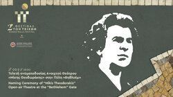 Αξίζει να σημειωθεί ότι η τελετή ονοματοδοσίας του Ανοικτού Θεάτρου «Μίκης Θεοδωράκης» στην Πύλη Βηθλέεμ θα πραγματοποιηθεί στις 19:00.