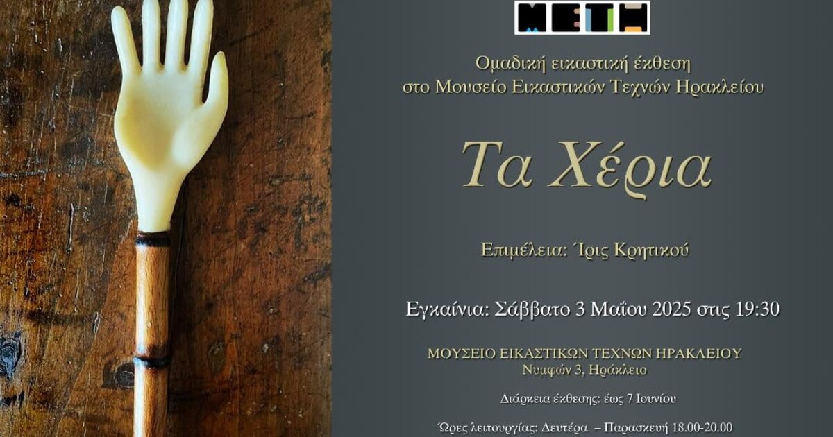 Το Μουσείο Εικαστικών Τεχνών Ηρακλείου εγκαινιάζει την έκθεση με τίτλο " Τα χέρια".