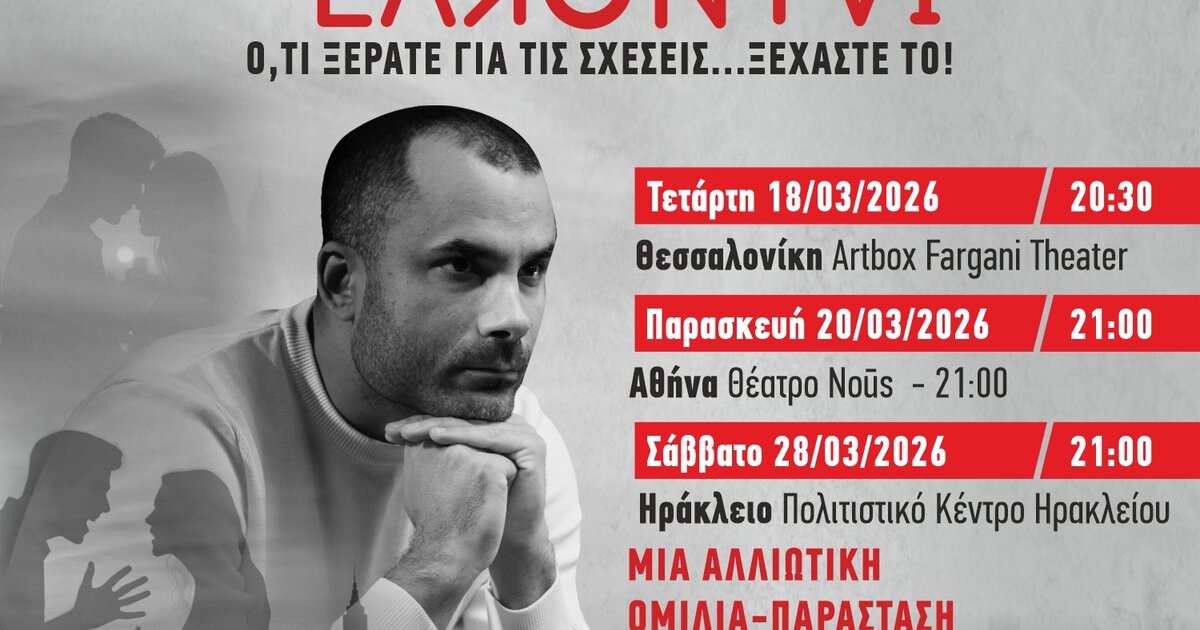 Μια θεραπευτική εξομολόγηση είναι η ομιλία - παράσταση "Τα Ομώνυμα Έλκονται" του συγγραφέα Νικόλα Σμυρνάκη, που αναδεικνύει τα αόρατα τραύματα, τις συγκρούσεις και τις ελπίδες που όλοι κουβαλάμε στην ατέρμονη προσπάθειά μας να συνδεθούμε - χωρίς να χαθούμε.