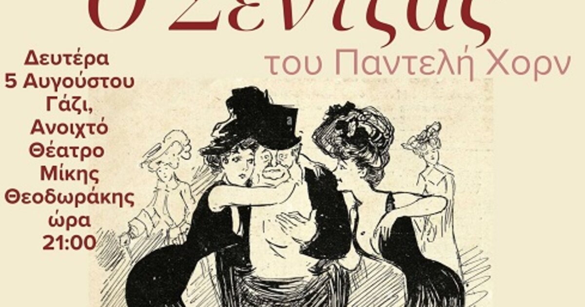 Την ηθογραφική κωμωδία "Σέντζας"του Παντελή Χόρν θα παρουσιάσει η θεατρική ομάδα του Συλλόγου Μυλοποταμιτων νομού Ηρακλείου, τη Δευτέρα 5 Αυγούστου στο Γάζι στο Δημοτικό Ανοιχτό Θέατρο «Μίκης Θεοδωράκης», στις 21.00 το βράδυ.