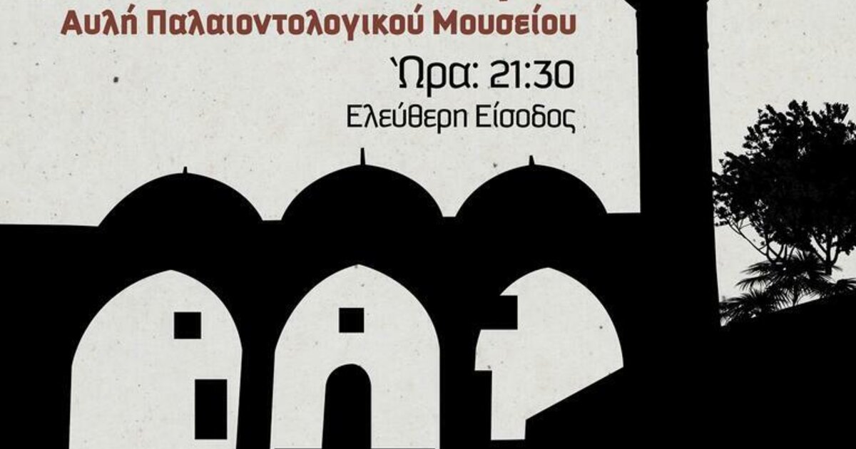 Υπενθυμίζεται ότι η συναυλία θα πραγματοποιηθεί στις 9:30 μμ στην Αυλή του Παλαιοντολογικού Μουσείου, με ελεύθερη είσοδο