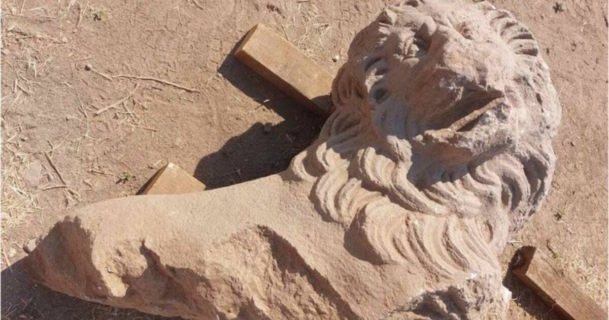 Κατά την ανασκαφή του νότιου decumanus εντοπίστηκε, σε πολύ καλή κατάσταση, τμήμα μαρμάρινου λέοντα μεγάλων διαστάσεων. Συγκεκριμένα, σώζεται ακέραια η κεφαλή του, με την πλούσια κώμη του, και τμήμα του λαιμού και του σώματός του. Η κεφαλή είναι στραμμένη προς τη δεξιά πλευρά του. Τα χαρακτηριστικά της κεφαλής του λέοντα σώζονται σε άριστη κατάσταση.