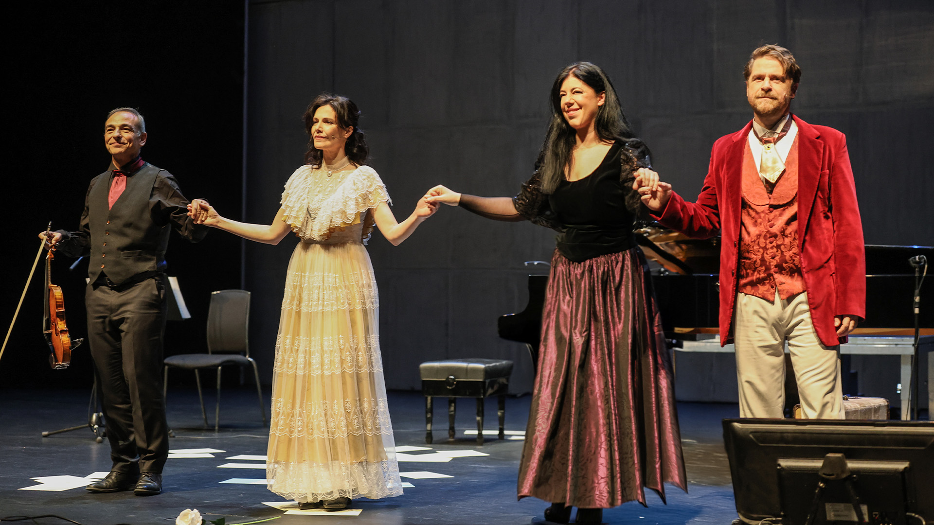Ο Δημήτρης Λάλος στον ρολό του Φρεντερίκ Σοπέν, η Μαριλίτα Λαμπροπούλου ως Γεωργίας Σάνδη, της γυναίκας που ενέπνευσε και σημάδεψε την ζωή του Σοπέν, Τατιάνα Παπαγεώργιου, πιάνο καλλιτεχνική διεύθυνση, δραματουργία κουστούμια, σκηνοθετική επιμέλεια Ελισάβετ Παπαγεωργίου, guest Star η σοπράνο Μαρία Κόκκα, βιολί ο σολίστ Γιώργος Παγιωτόπουλος.