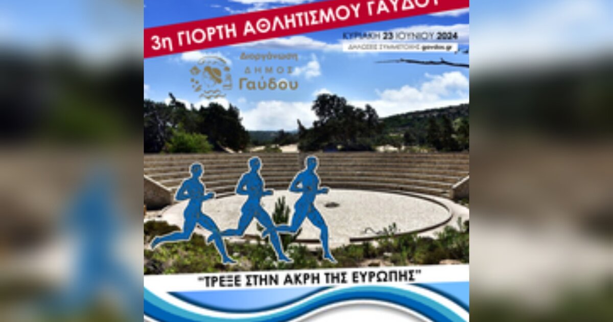 Ο Δήμος Γαύδου στο πλαίσιο της 3ης Γιορτής Αθλητισμού στο νησί της Καλυψούς, την ακριτική Γαύδο, προκηρύσσει τους 3ους αγώνες.
