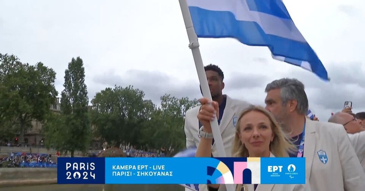 Ο Γιάννης Αντετοκούνμπο και η Αντιγόνη Ντρισμπιώτη ήταν οι σημαιοφόροι της Ελλάδας στην τελετή έναρξης των Ολυμπιακών Αγώνων 2024.