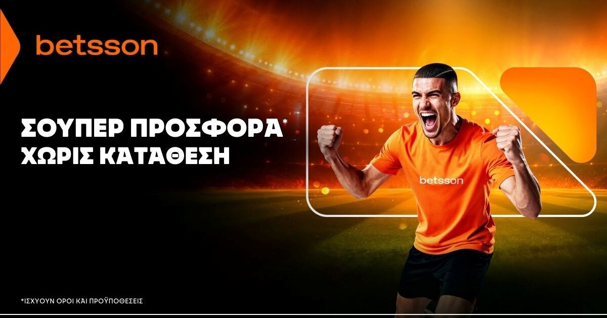 Betsson: Σούπερ προσφορά* χωρίς κατάθεση για το στοίχημα!