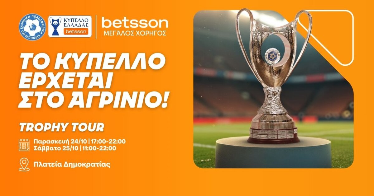 Μετά από μια δυναμική εκκίνηση στη Λάρισα, το Trophy Tour του Κυπέλλου Ελλάδας Betsson συνεχίζει το ταξίδι του με επόμενη στάση το Αγρίνιο!