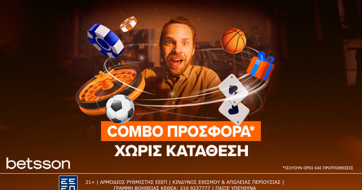 Στην Betsson τα βρίσκεις καθώς η νέα Combo Προσφορά* Χωρίς Κατάθεση εκτοξεύει τη διασκέδασή σου στα ύψη!
