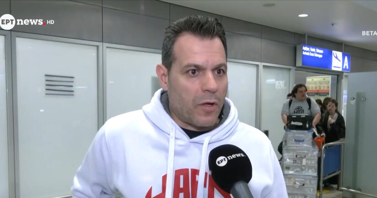 "Το βασικό είναι να επικρατήσει η ειρήνη και η λογική και να μην χάνονται ζωές" ευχήθηκε ο Έλληνας προπονητής κατά την άφιξή του στην Αθήνα