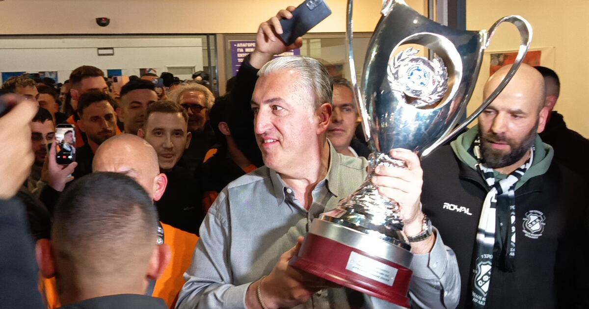 - Νύχτα ξελογιάστρα: Το ζεϊμπέκικο του Μπούση στο αεροδρόμιο, κρατώντας το κύπελλο