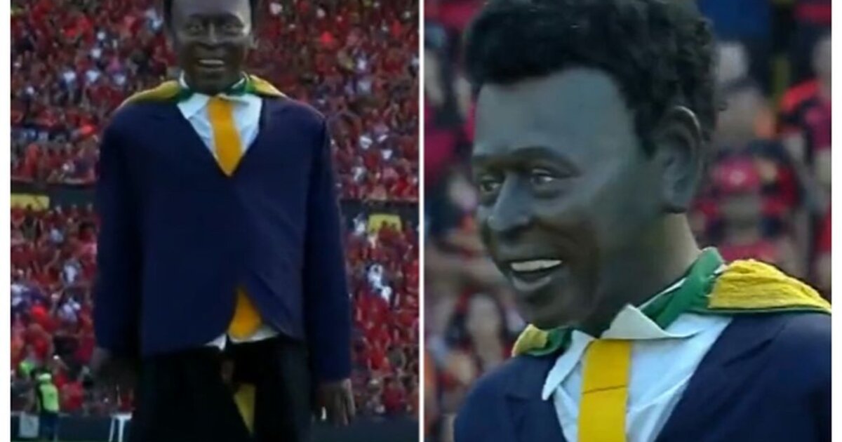 Μια τεράστια φιγούρα Πελέ βγήκε στον αγωνιστικό χώρο με ένα απόκοσμο χαμόγελο καθώς τόσο οι παίκτες όσο και οι διαιτητές χειροκροτούσαν.