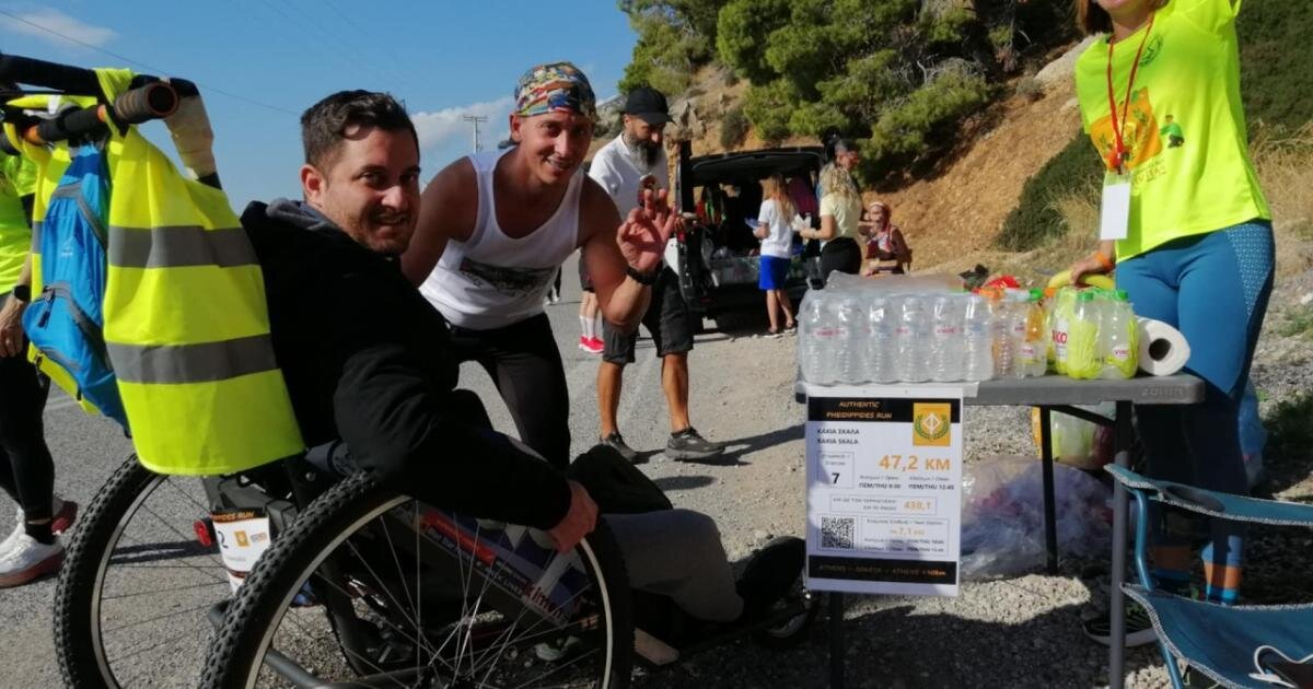 Οι δύο συναθλητές σημείωσαν παγκόσμιο ρεκόρ στον 9ο Αυθεντικό Φειδιππίδειο Δρόμο, στον αγώνα με αμαξίδιο
