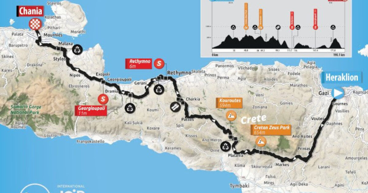 Ένα απαιτητικό ετάπ που κινείται στις παρυφές των Λευκών Ορέων της Κρήτης είναι το πρώτο του ΔΕΗ Ποδηλατικού Γύρου Ελλάδας, που φέτος αναβιώνει ύστερα από 10 χρόνια χάρη στις συντονισμένες ενέργειες του Υφυπουργού Αθλητισμού, Λευτέρη Αυγενάκη.