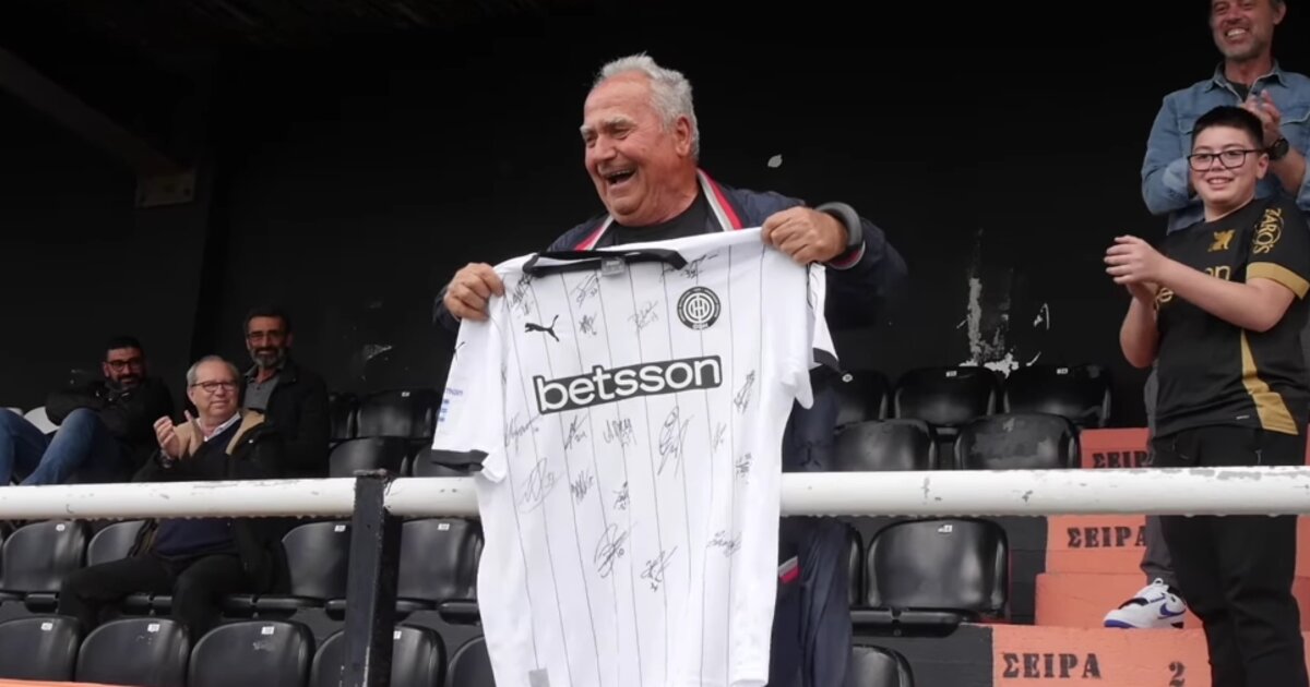 Πριν το ματς με τον Ατρόμητο ο Χουάν Νέιρα του έκανε έκπληξη και μαζί με τον αντιπρόεδρο της ΠΑΕ, Ηλία Πουρσανίδη, πήγαν κοντά του για να του δώσουν μια υπογεγραμμένη φανέλα με το όνομά του, ως ελάχιστο δείγμα ευγνωμοσύνης για την πίστη, την αφοσίωση και την αγάπη του στον ΟΦΗ!