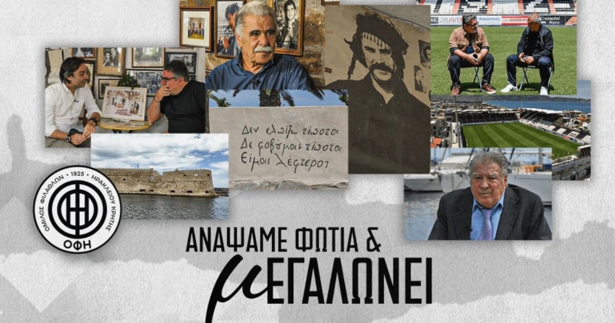 Η ιστοσελίδα Athletiko και ο δημοσιογράφος Μιχάλης Τσώχος δημιούργησαν μία mini movie που θα συγκινήσει και θα ταξιδέψει κάθε ποδοσφαιρόφιλο. Στη mini movie για τον ΟΦΗ φιλοξενούνται ο αντιπρόεδρος της ΠΑΕ ΟΦΗ και παλαίμαχος της ομάδας Ηλίας Πουρσανίδης, ο πρώην προπονητής και παλαίμαχος του ΟΦΗ Νίκος Νιόπλιας, ο παλιός παράγοντας της ομάδας Παντελής Μυριοκεφαλιτάκης, οι ποδοσφαιριστές Βασίλης Λαμπρόπουλος, Ταξιάρχης Φούντας, Νίκος Χριστογεώργος, Γιάννης Θεοδοσουλάκης και ο γνωστός λυράρης και τραγουδιστής Βασίλης Σκουλάς.