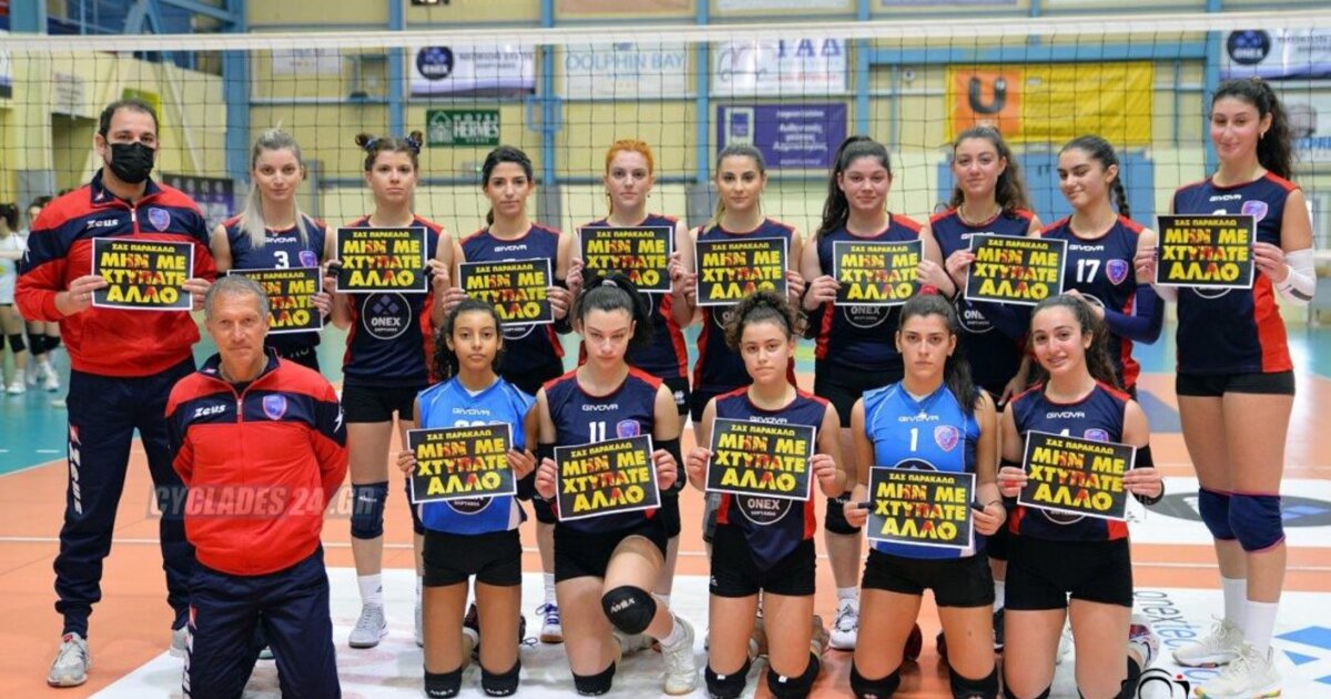 «Σας παρακαλώ μην με χτυπάτε άλλο… » έγραφε το μήνυμα σε ταμπελάκια που σήκωσαν οι αθλήτριες του Φοίνικα Σύρου στην Α’ αίθουσα του Αθλητικού Κέντρου «Δημήτριος Βικέλας» . Λέξεις τις οποίες είπε ο 19χρονος λίγο πριν αφήσει την τελευταία του πνοή…