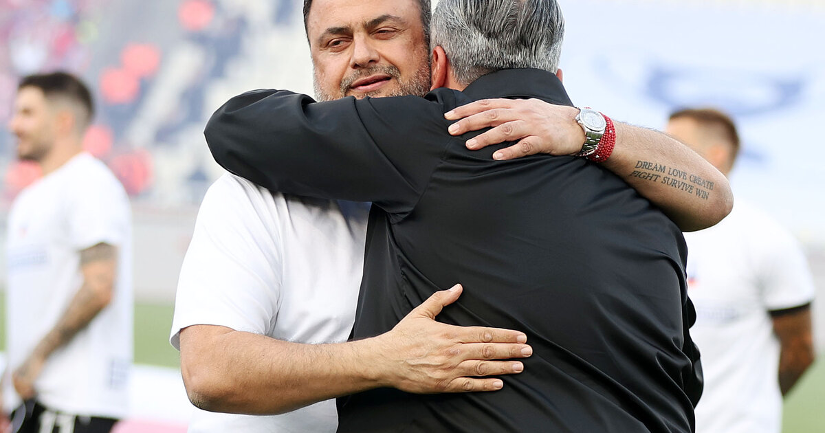 Μπούσης και Μαρινάκης αγκαλιασμένοι λίγο πριν από τη σέντρα