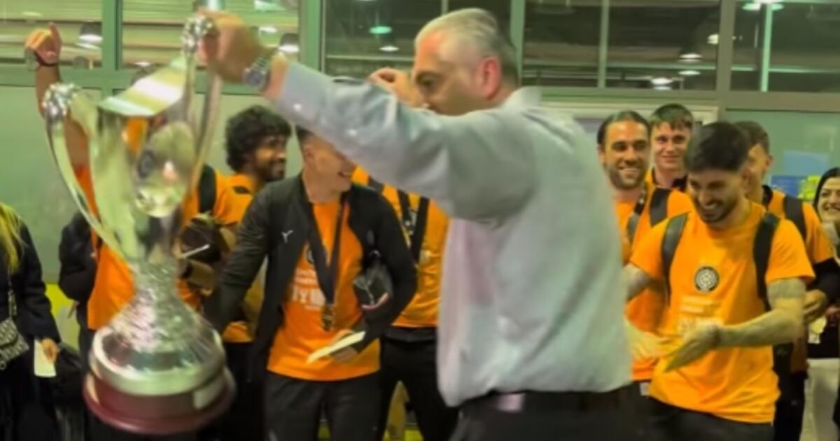 Νύχτα ξελογιάστρα: Το ζεϊμπέκικο του Μπούση στο αεροδρόμιο, κρατώντας το κύπελλο