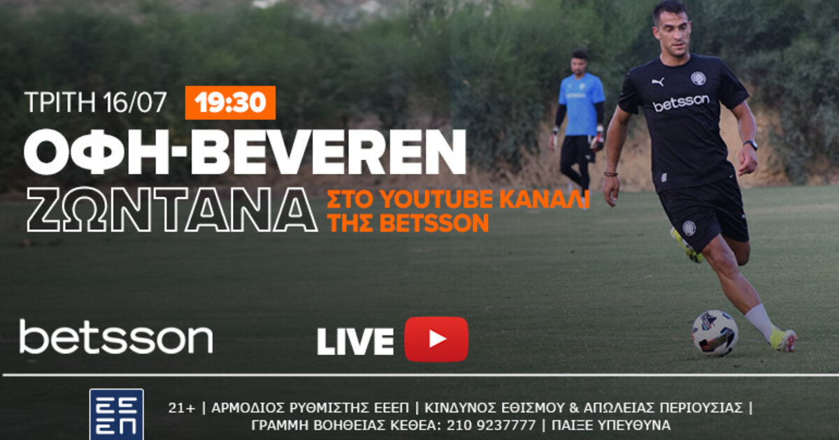 Το ΟΦΗ-Beveren ζωντανά στο YouTube κανάλι της Betsson!