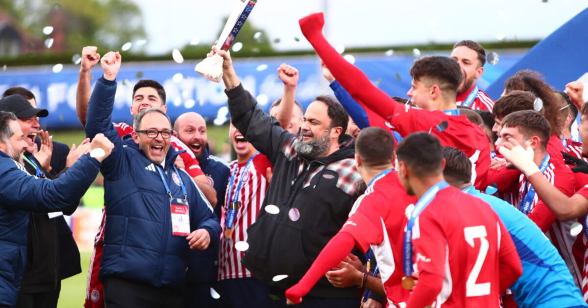 Λίγες στιγμές αργότερα, ο Θάνος Κουτσογούλας σήκωνε το τρόπαιο στον ελβετικό ουρανό και μαζί του τον Ολυμπιακό και το ελληνικό αναπτυξιακό ποδόσφαιρο στα ουράνια.