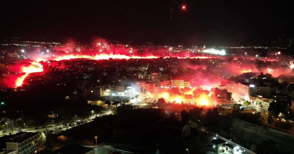Στις 22:00 άρχισε το μοναδικό σόου με καπνογόνα και βεγγαλικά να συνθέτουν το γιορτινό κλίμα.