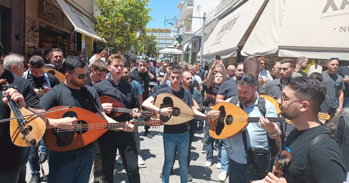 Ένα αυθεντικό κρητικό γλέντι έχει ήδη στηθεί στο κέντρο του Αμαρουσίου, κοντά στον σταθμό ΗΣΑΠ «Μαρούσι», σημείος συνάντηση των φιλάθλων του ΟΦΗ πριν την αναχώρηση για το ΟΑΚΑ και τον μεγάλο τελικό του Κυπέλλου κόντρα στον Ολυμπιακό.