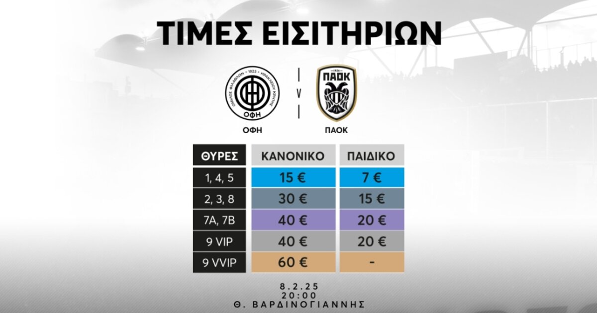 Τα εισιτήρια του αγώνα ΟΦΗ-ΠΑΟΚ