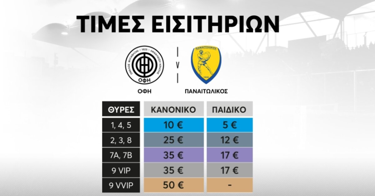 Τα εισιτήρια του κυριακάτικου αγώνα του ΟΦΗ με τον Παναιτωλικό