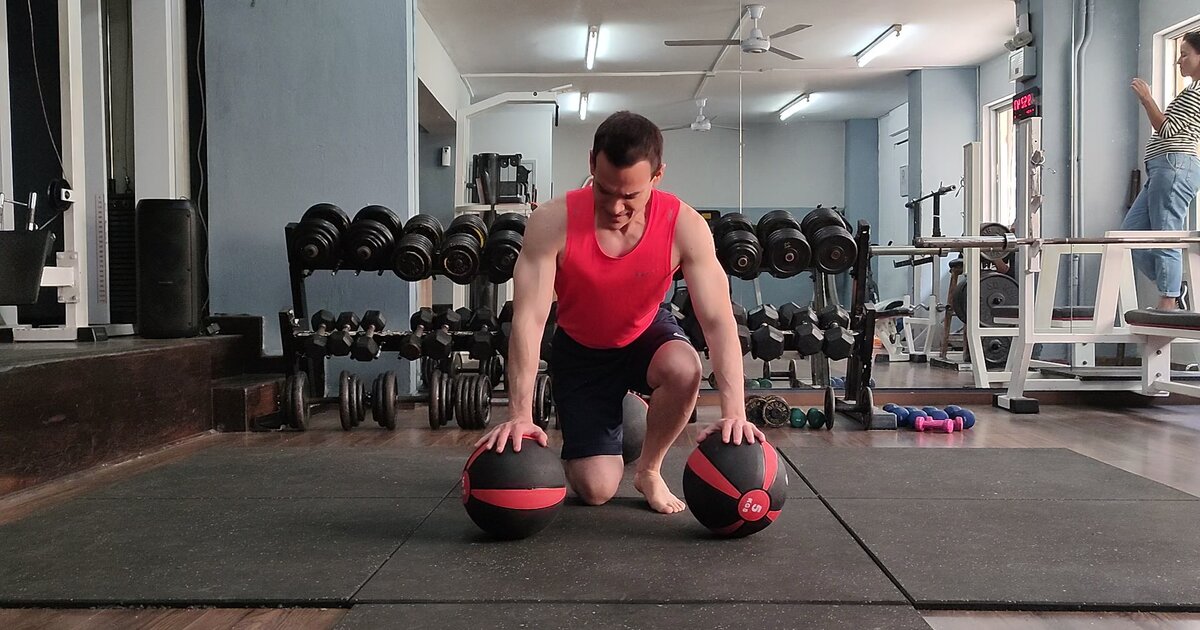 Οι κάμψεις πάνω σε ιατρικές μπάλες αποτελούν μια απαιτητική άσκηση ενδυνάμωσης του σώματος, ιδίως του κορμού. Η ασταθής επιφάνεια της μπάλας απαιτεί συνεχή ενεργοποίηση των μυών για τη διατήρηση της ισορροπίας, καθιστώντας την άσκηση πολύ πιο δύσκολη από τις κλασικές κάμψεις. Επιπλέον, ενεργοποιούνται περισσότεροι μύες, όπως αυτοί της κοιλιάς, της ράχης και των γλουτών, ενώ η φύση της μπάλας αυξάνει την ανάγκη για μυϊκό συντονισμό και ευκινησία στις αρθρώσεις.