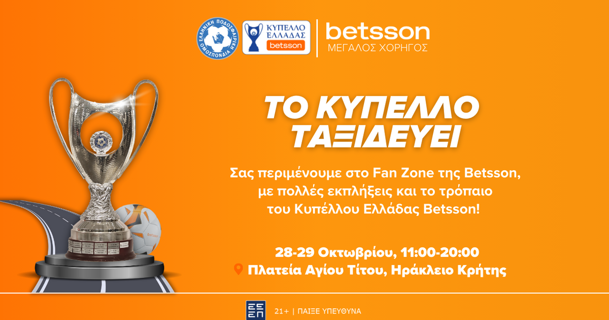 Για πρώτη φορά στην ιστορία του Κυπέλλου Ελλάδας Betsson, η ΕΠΟ και ο μεγάλος χορηγός της διοργάνωσης, η Betsson, συνδιοργανώνουν ένα συναρπαστικό ταξίδι του τροπαίου σε πόλεις της Ελλάδας, χαρίζοντας στους φιλάθλους την ευκαιρία να το δουν από κοντά.